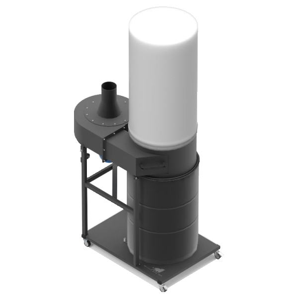 El ASP-3CV-B comparte el motor y el sistema de aspiración del ASP-3CV, con la misma potencia de 3 CV y los mismos álabes de acero de 4 mm que permiten aspirar la viruta de aluminio caliente sin deteriorarse. La diferencia está en el sistema de recogida de residuos: en lugar del saco de polietileno desechable de 230 litros, este modelo incorpora un bidón metálico reutilizable de 200 litros.
