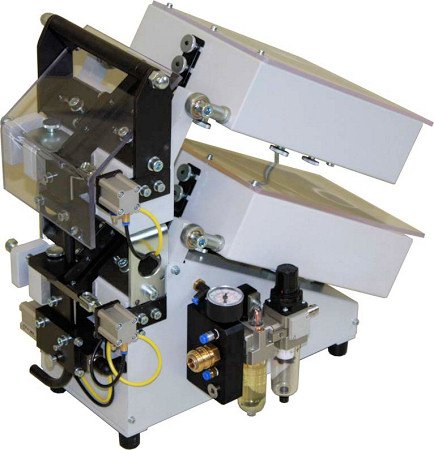 Modulo para suministrar tornillos automáticamente a los módulos que cuentan con un atornillador. Puede almacenar dos medidas de tornillo hasta 1+1 Kg de tornillos. Si se instalan dos atornilladores en el mismo banco se acopla un divisor de tornillos que permite enviar tornillos a dos atornilladores.