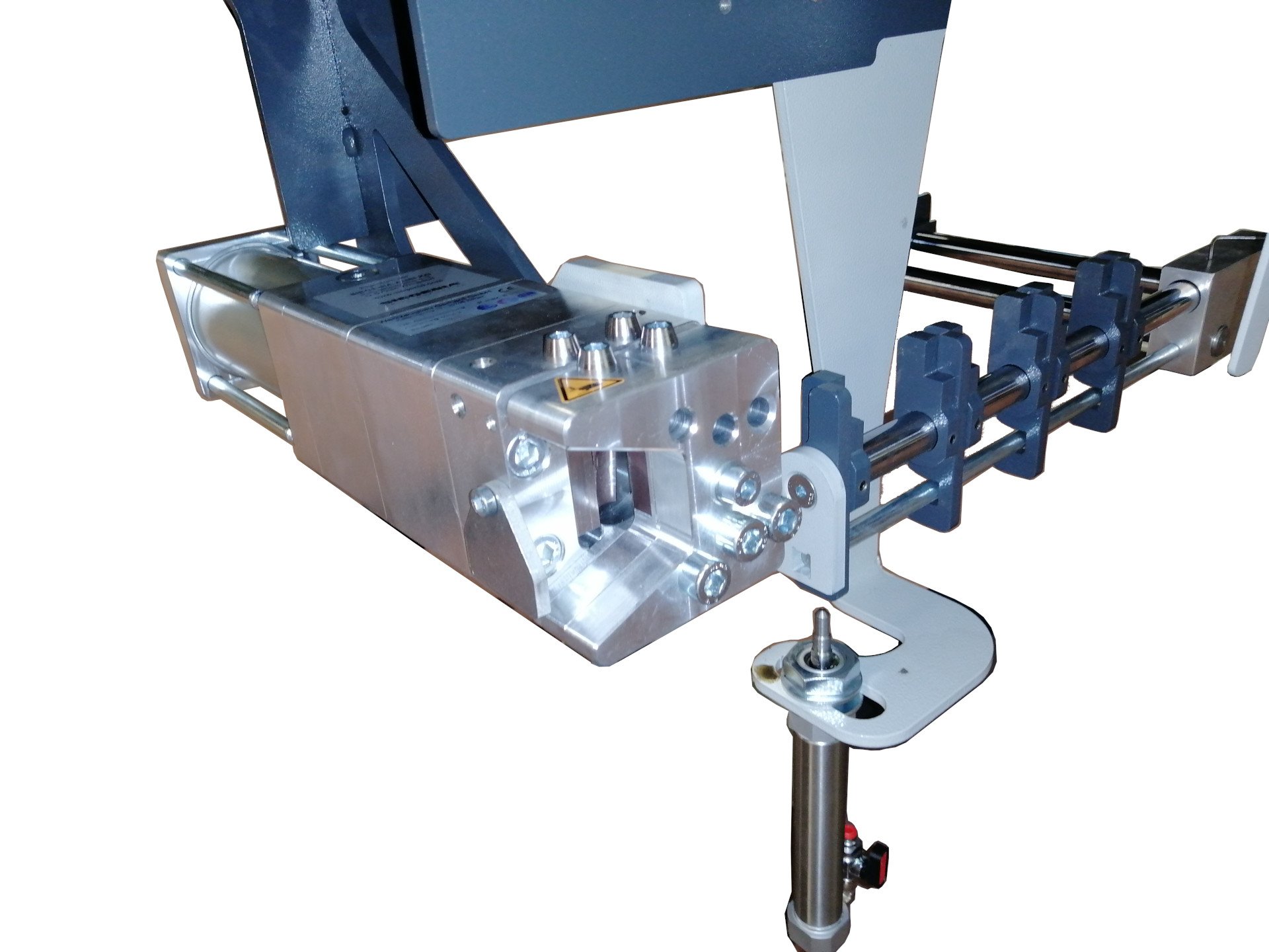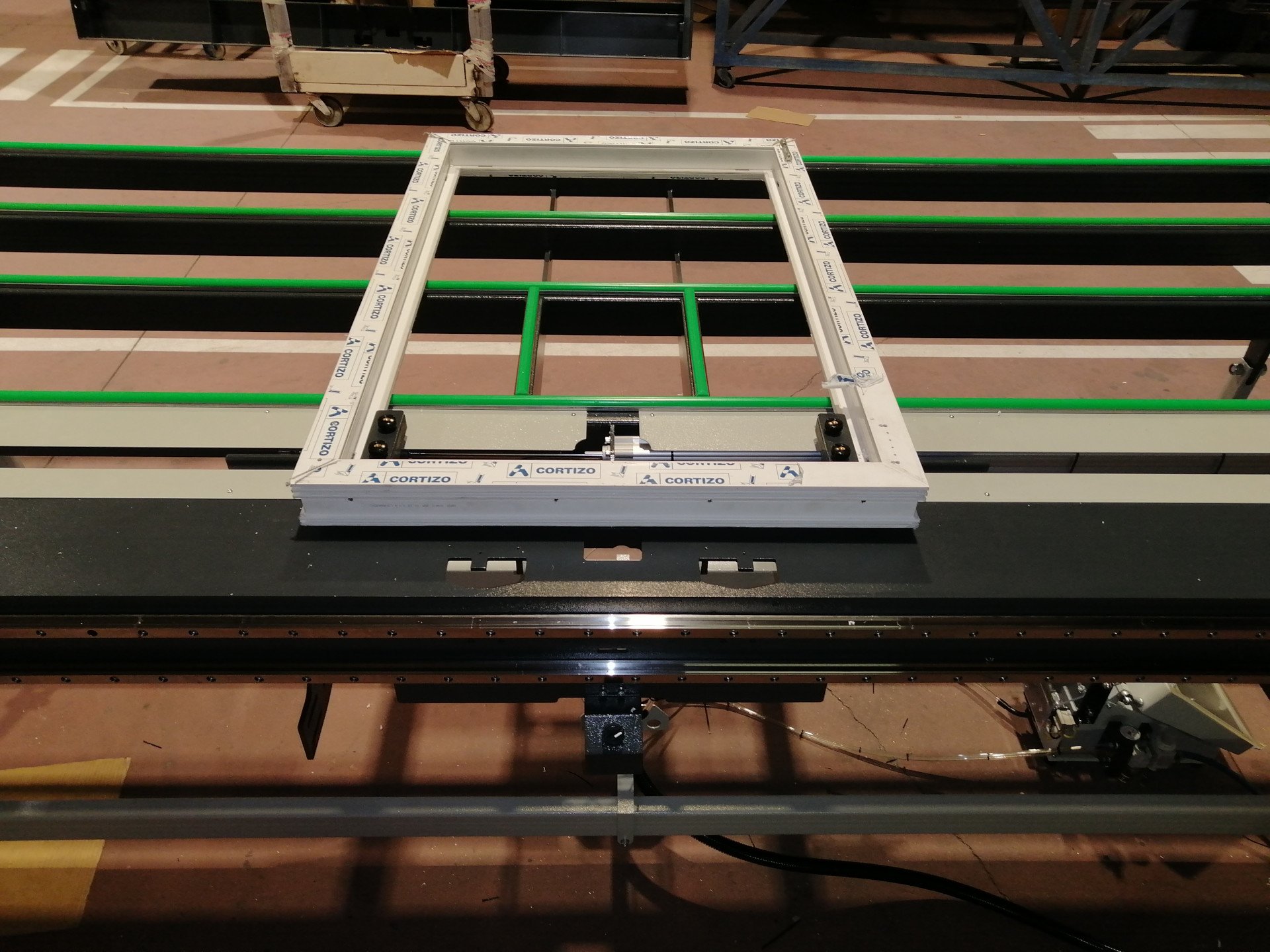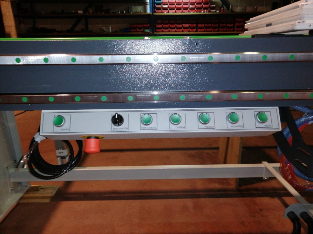 Cuenta con posicionamiento de la hoja de la ventana sobre zonas de ventana estandar para eliminar regulaciones por cambios de fabricantes de perfiles. Base de la mesa protegida con poliamida deslizante para facilitar la manipulación de la carpintería e impedir deterioros.