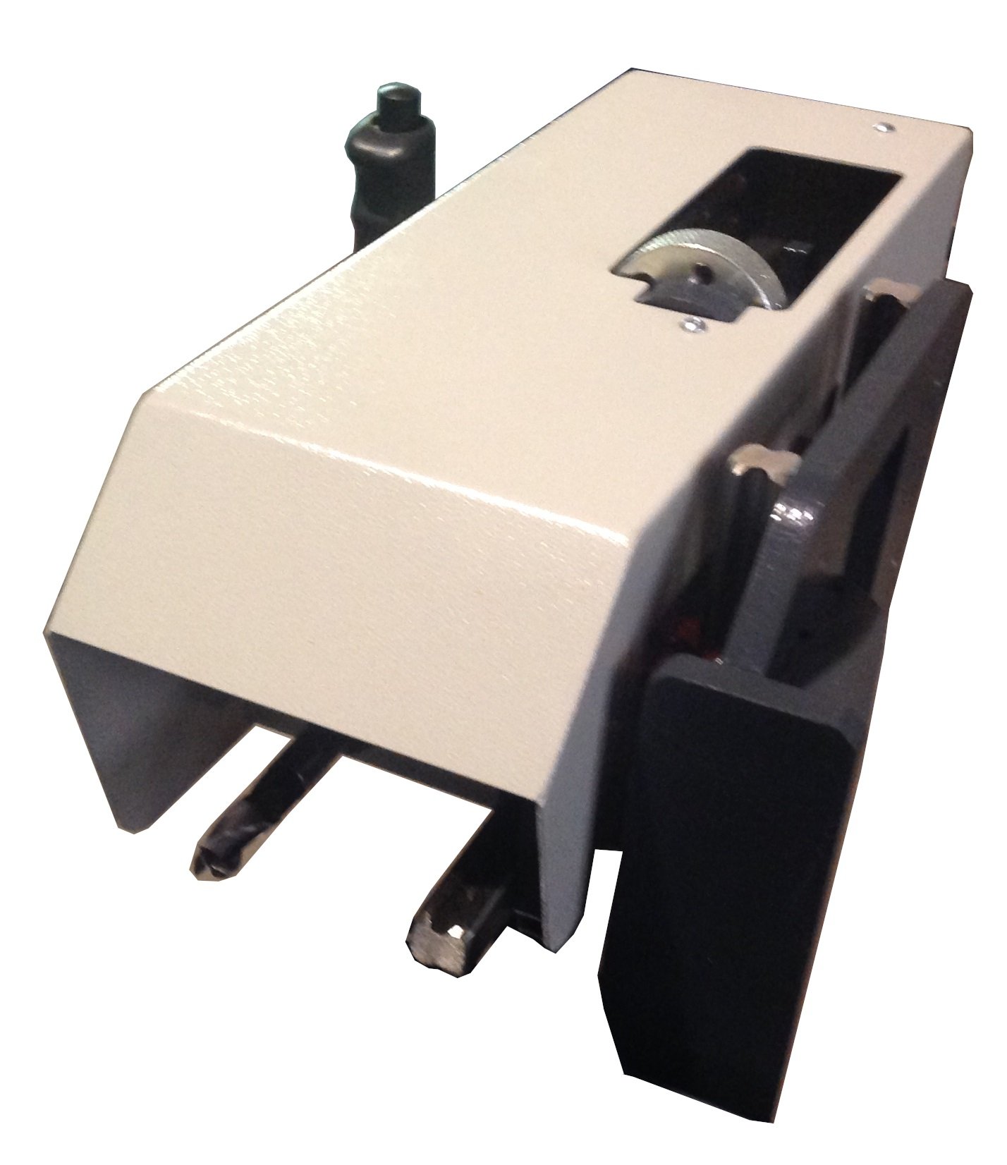 Modulo para cortar los herrajes a la medida de la hoja. Mediante los centradores incorporados en la mesa la cizalla se coloca a la medida automáticamente facilitando así el corte con precisión.