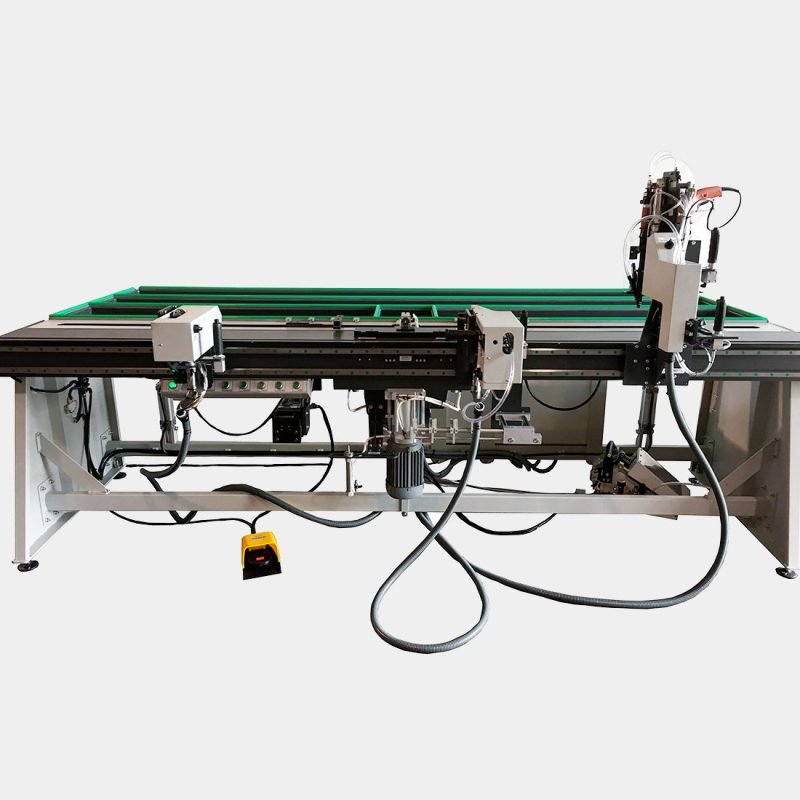 - Centradores semiautomáticos de hojas de ventana para el mecanizado de la cremona (3 taladros inferiores)