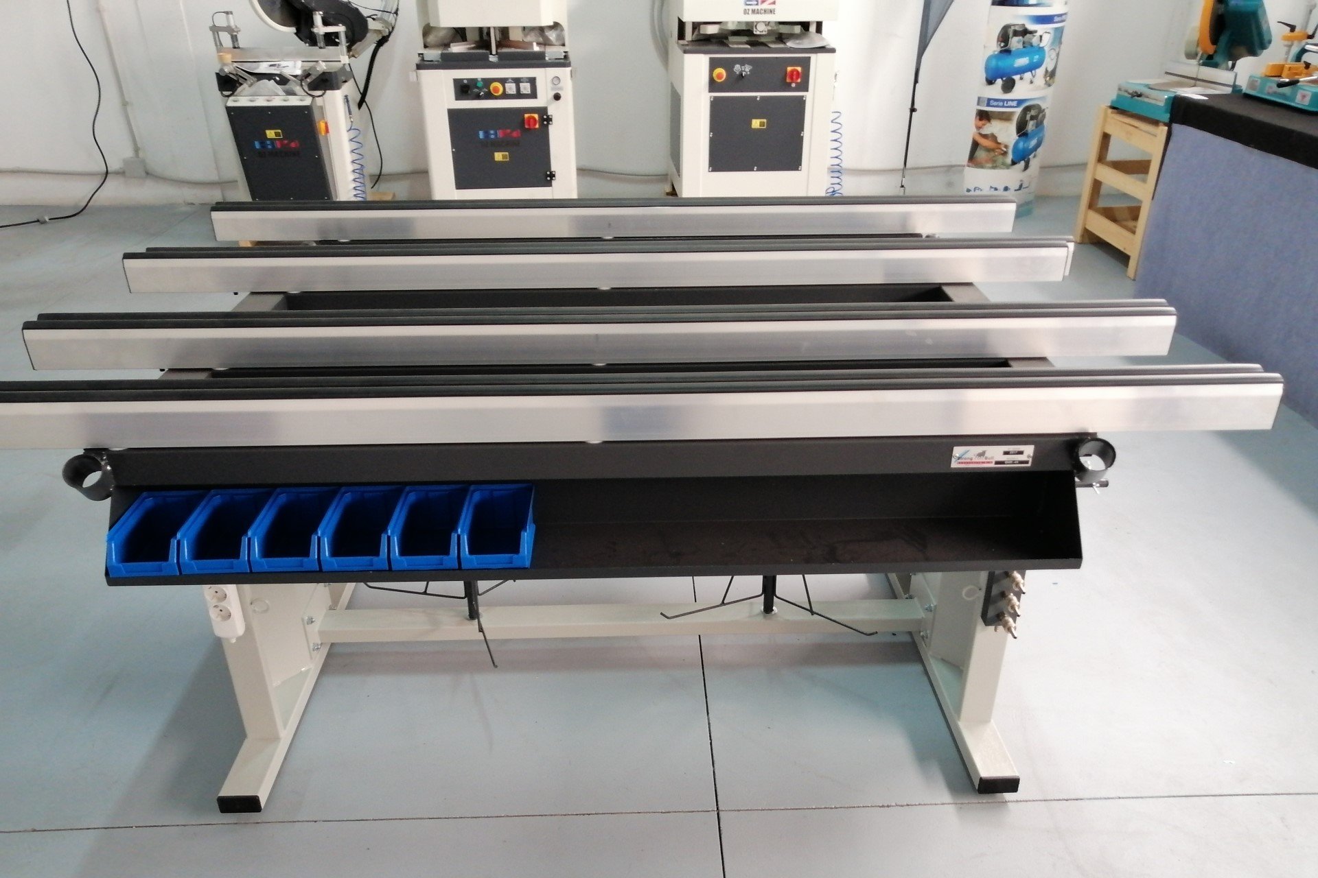 Los brazos extensibles cuentan con una goma especial que hace que las virutas caigan fuera de la mesa evitando así los arañazos que estropearían el acabado estético de las ventanas.
