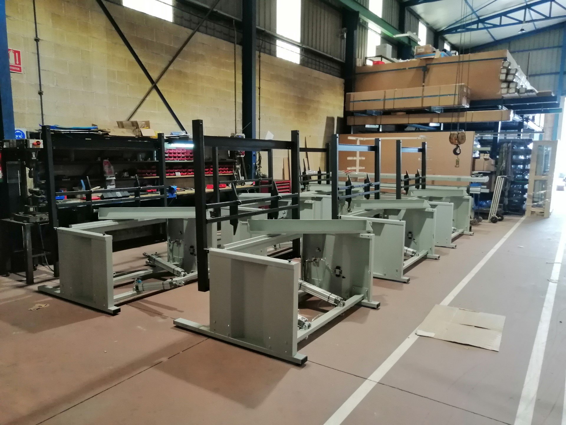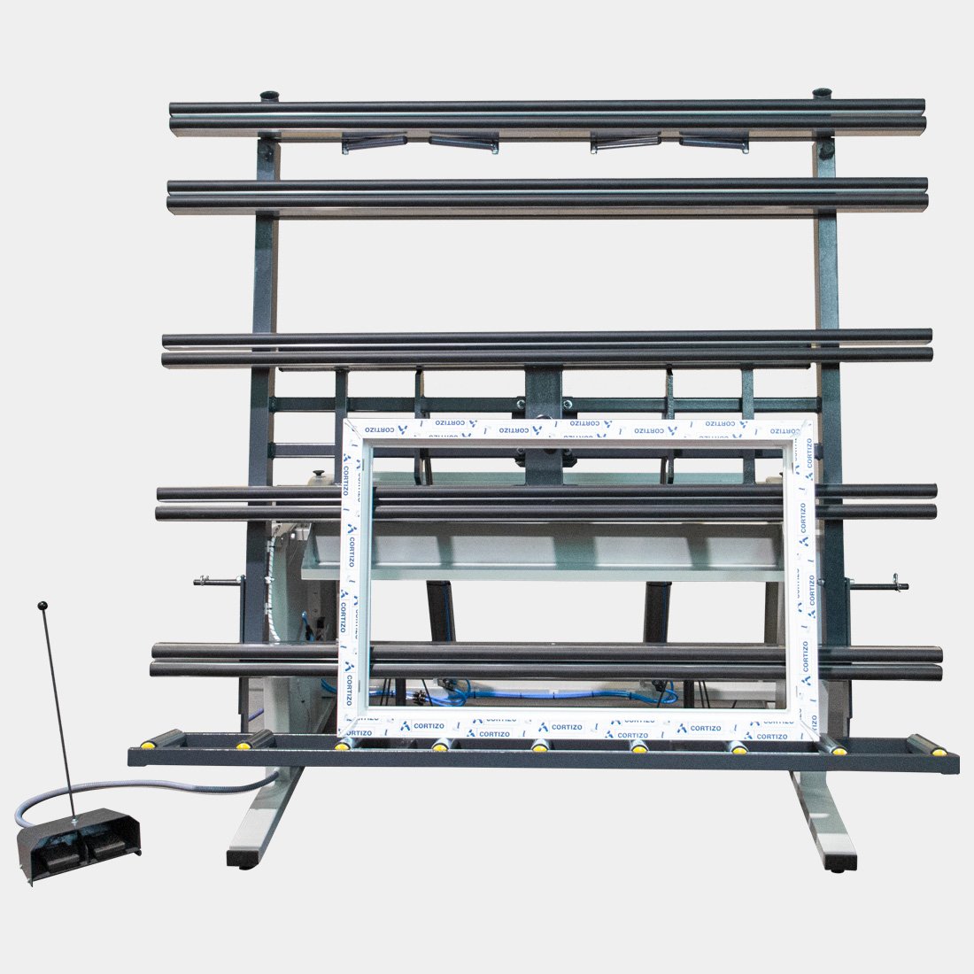 Banco de trabajo desarrollado para el montaje de grandes ventanales con basculación neumática de 0˚ a 85˚. Este modelo de banco permite girar la carpintería 360˚, para que el operario no tenga que desplazarse y pueda trabajar siempre desde el mismo lado.