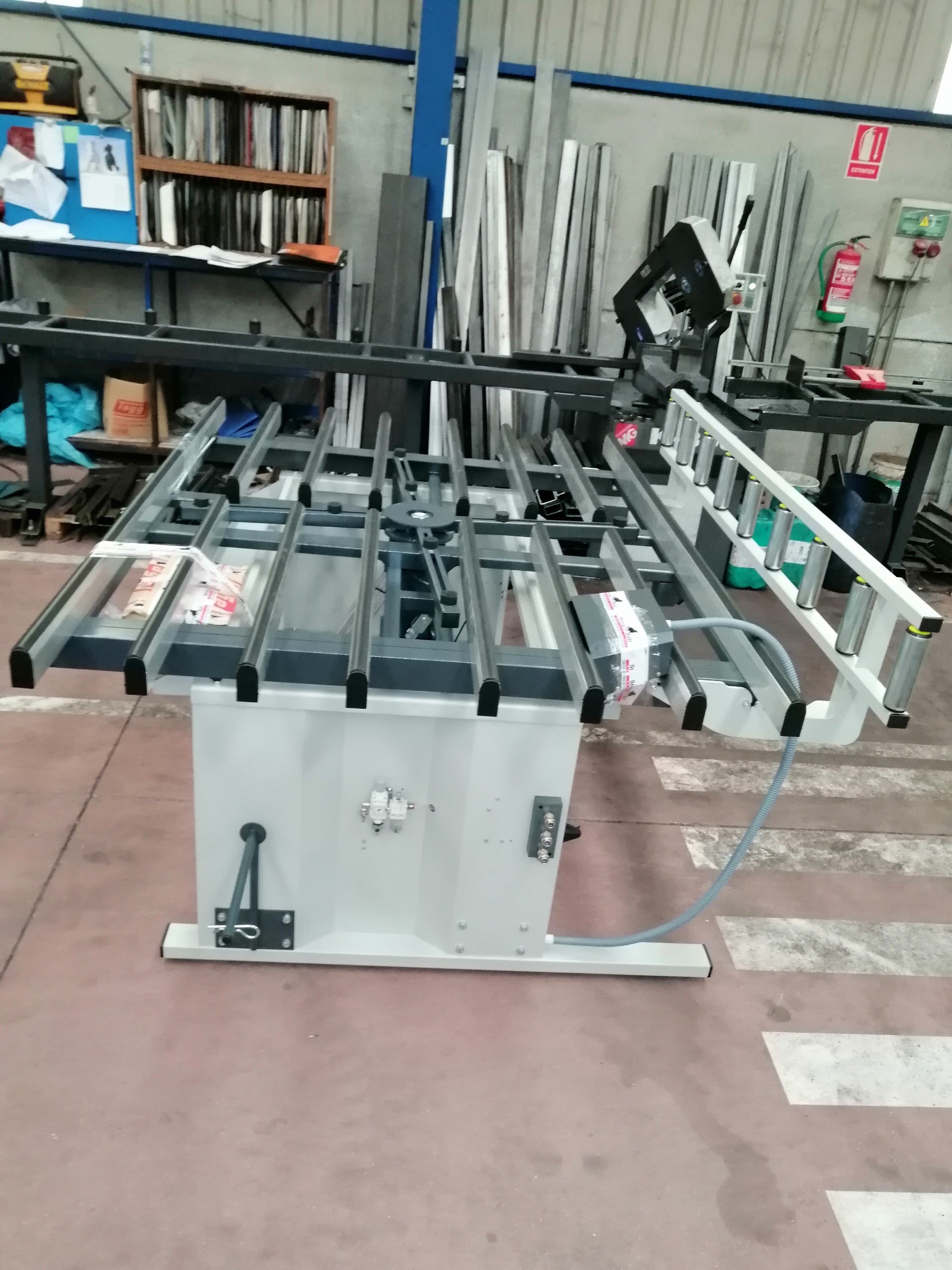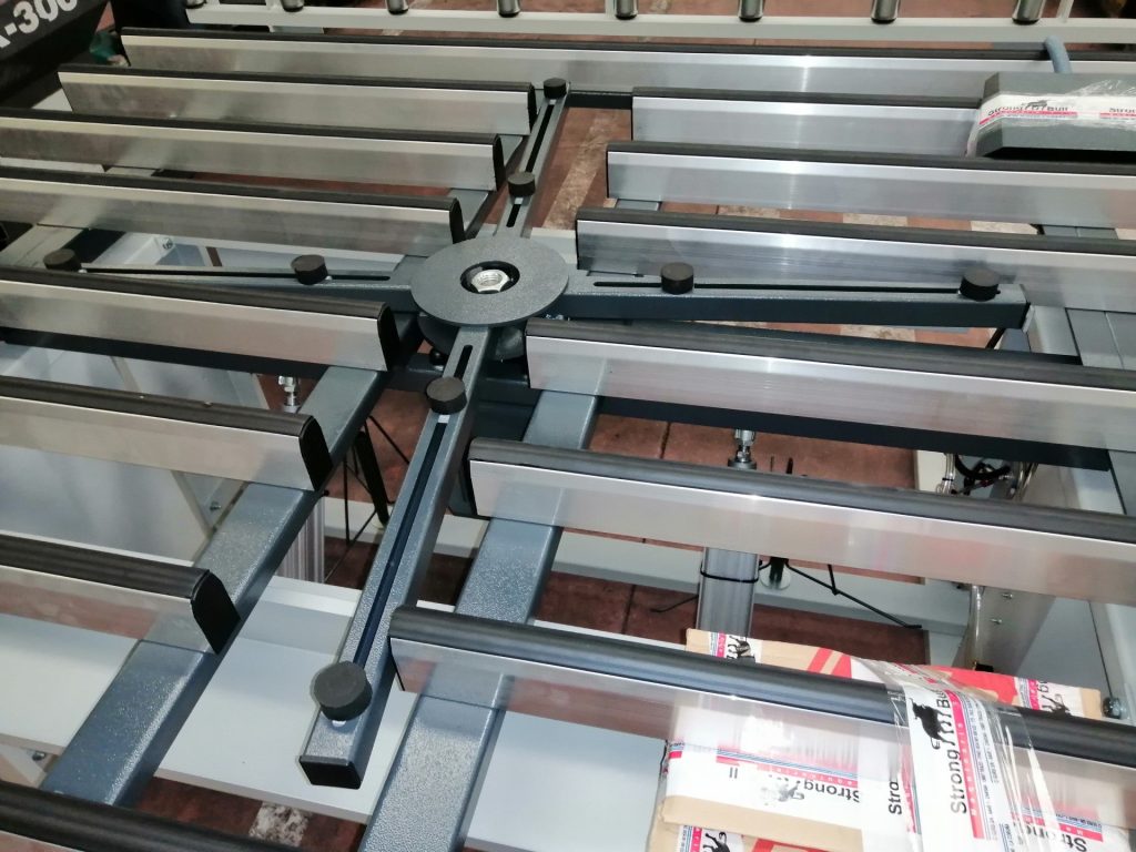 En este modelo solo el primer y ultimo brazo son extensibles y al igual que los demás bancos cuentan con una goma especial que hace que las virutas caigan fuera de la mesa evitando así los arañazos que estropearían el acabado estético de las ventanas.