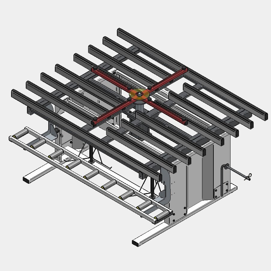Banco de trabajo basculante y giratorio diseñado para poder realizar el montaje de carpinterías.