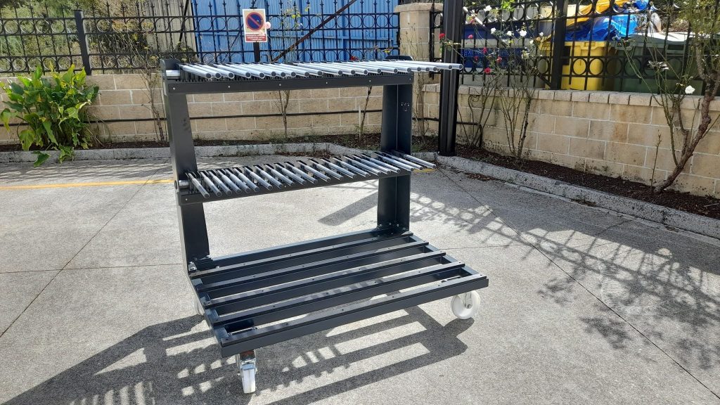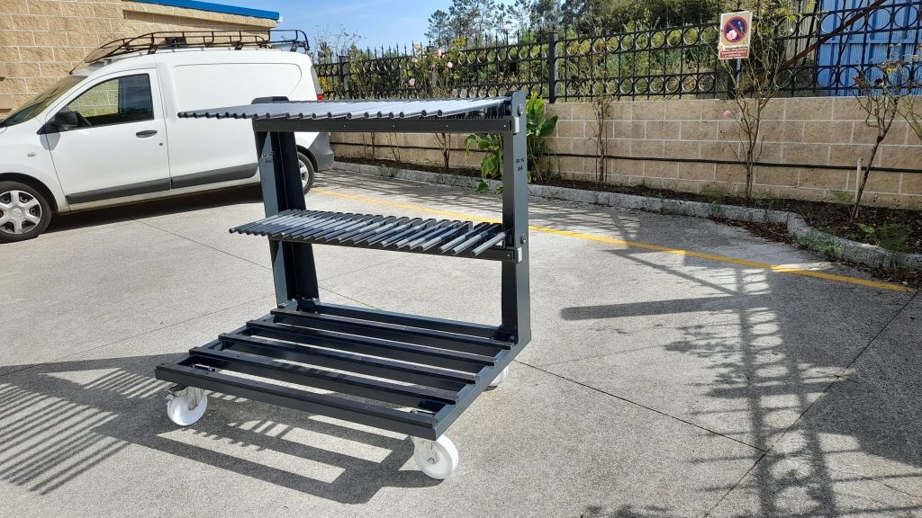 Carro para el transporte de cristales listos para ser montados en la ventana.