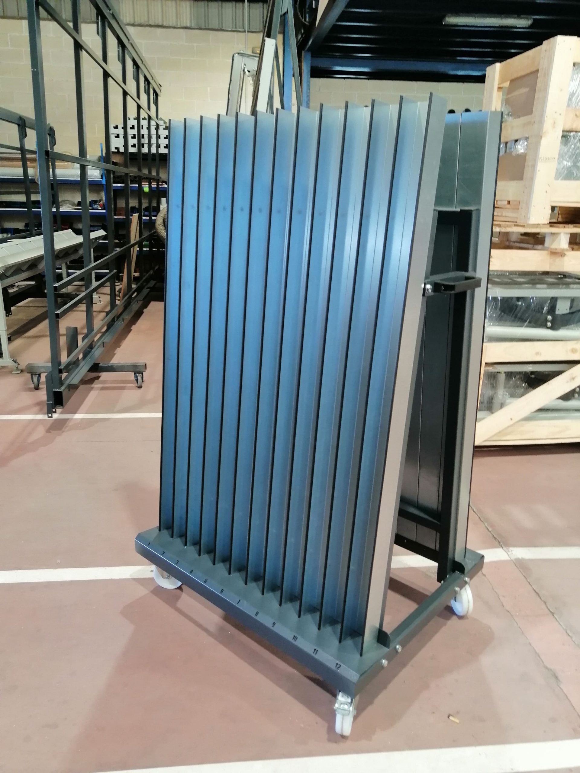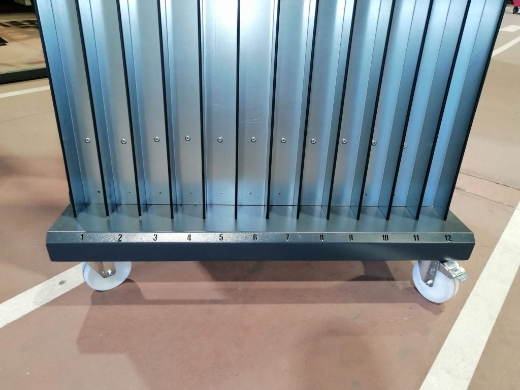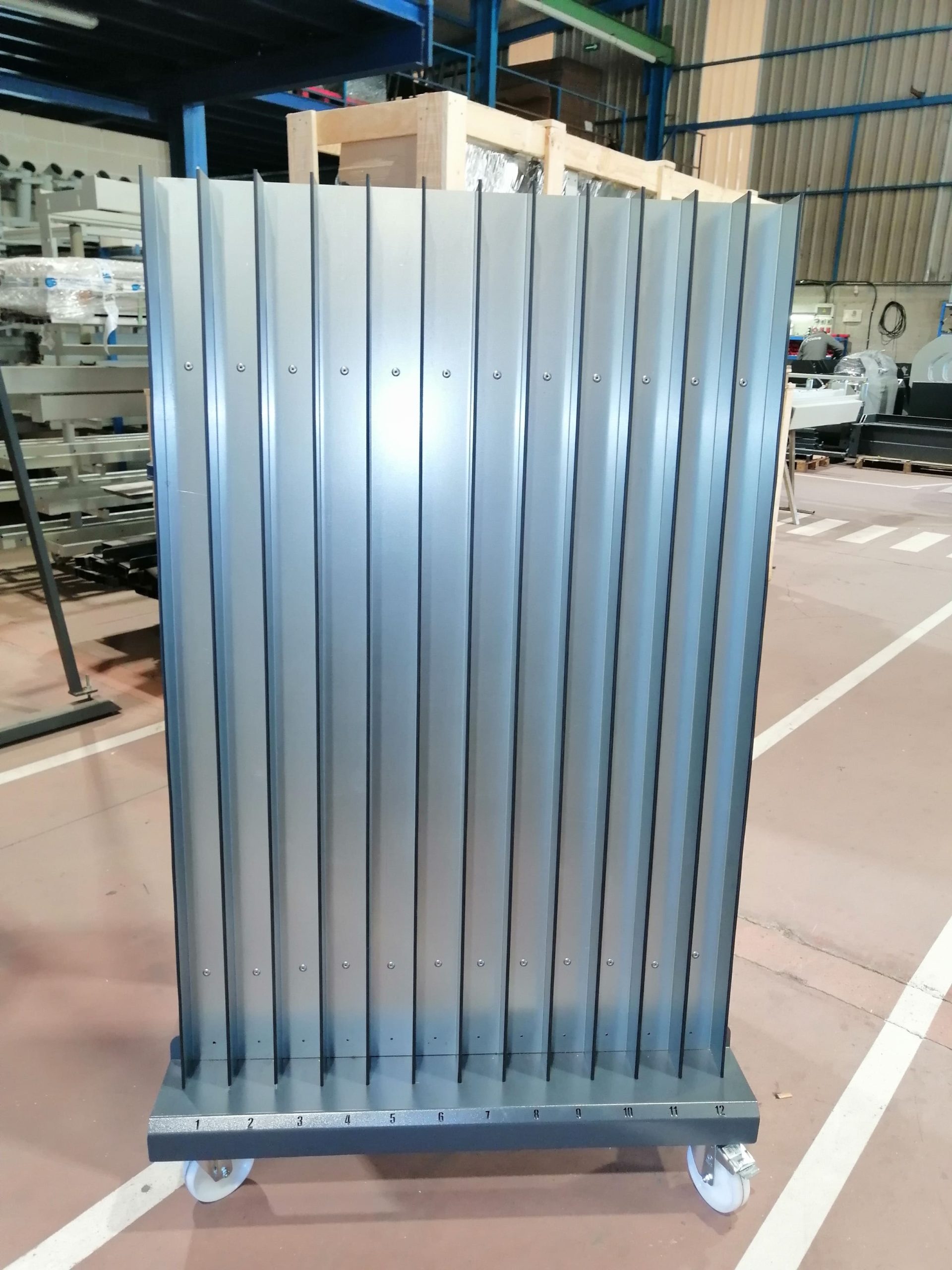 Carro destinado al transporte ordenado de junquillos cortados. Cuenta con casilleros de chapa galvanizada, todos ellos numerados.