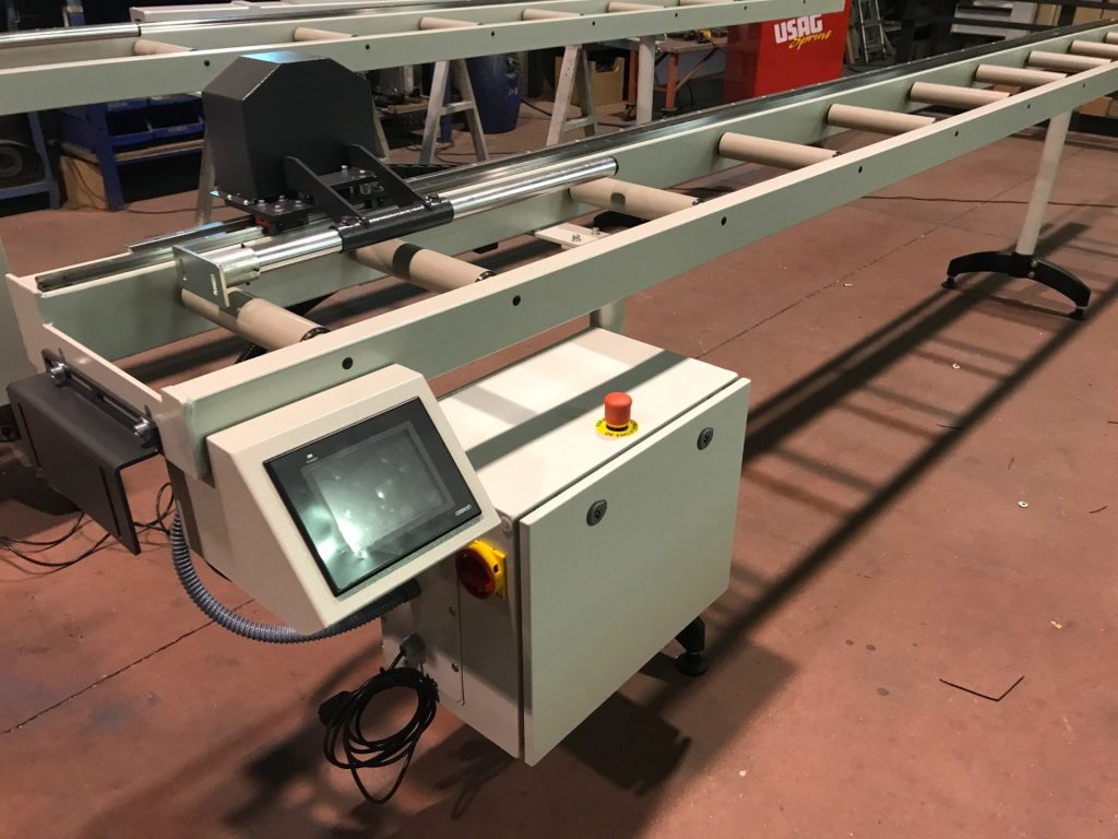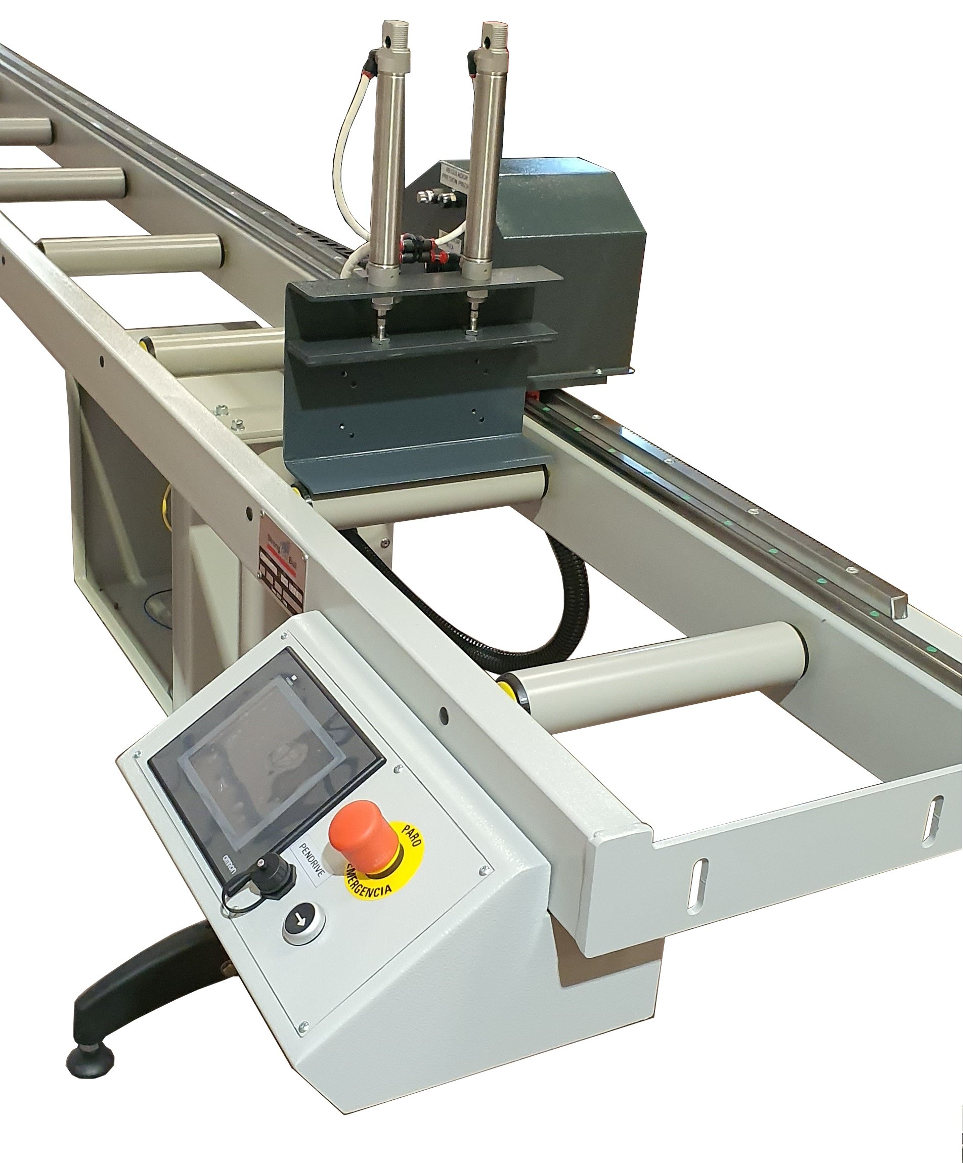 Equipado con pantalla táctil, servomotor, guías rectificadas y cremallera permite el posicionamiento automático del tope con gran precisión.
