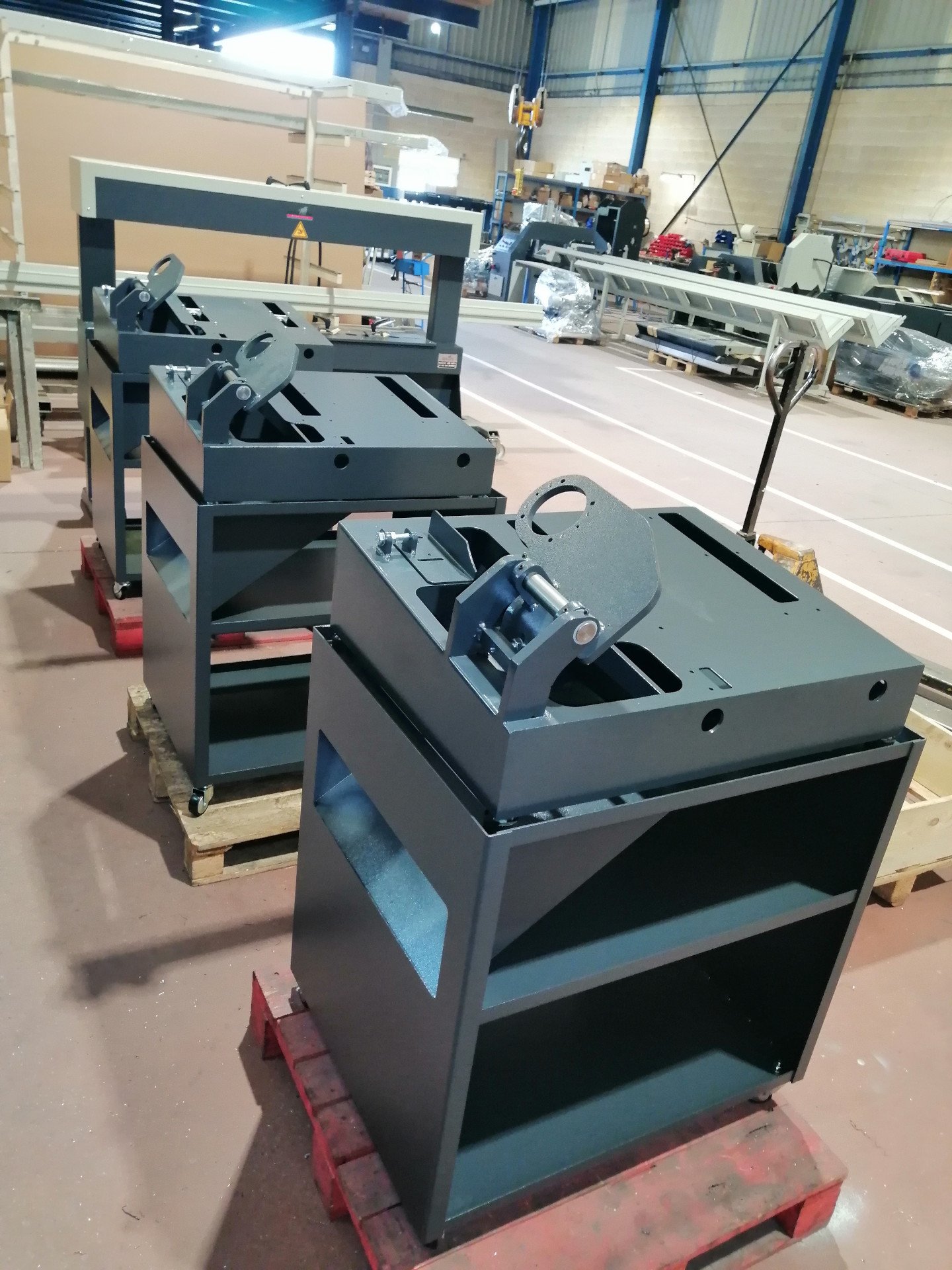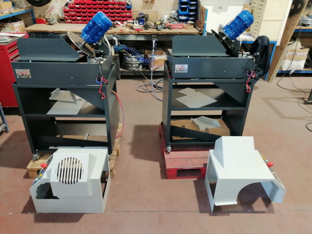Máquina diseñada para cortar el sobrante de goma en perfiles cortados a 45˚.