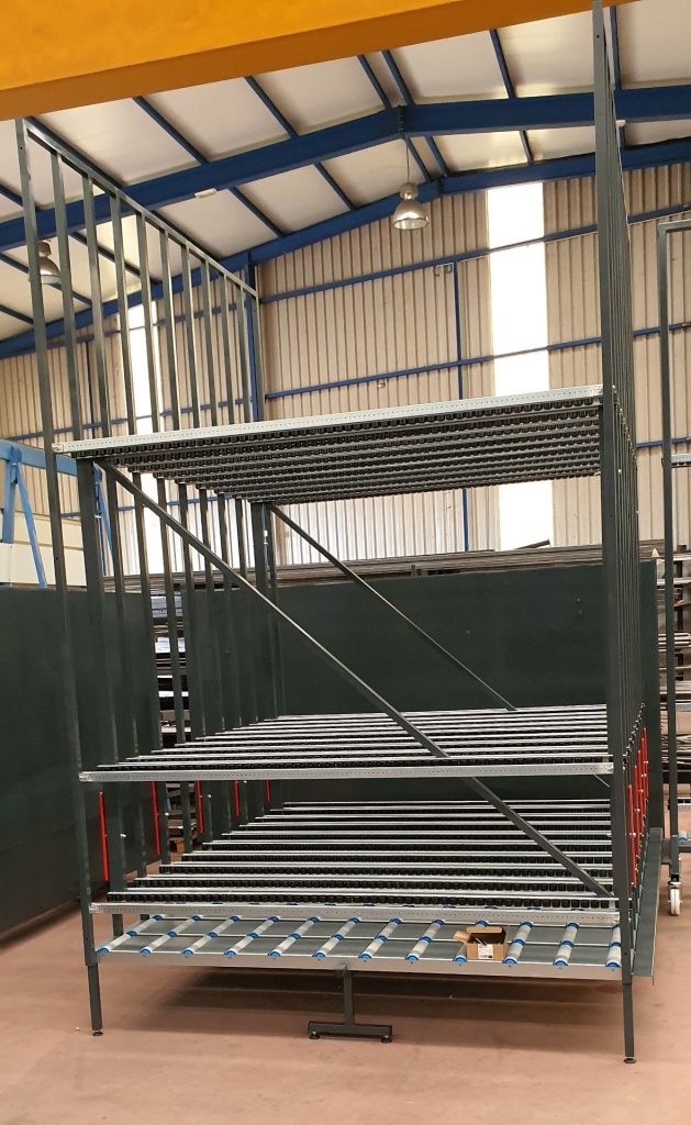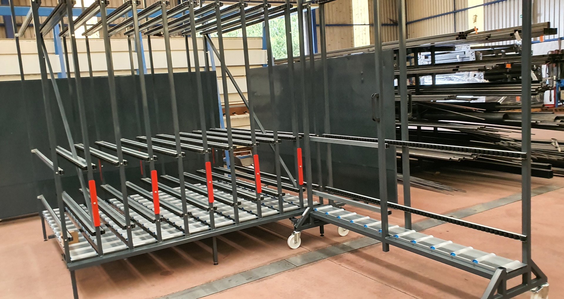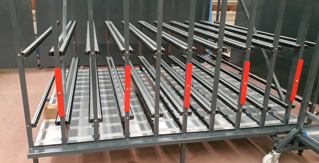 Sistema de almacenaje para ventanas terminadas.
