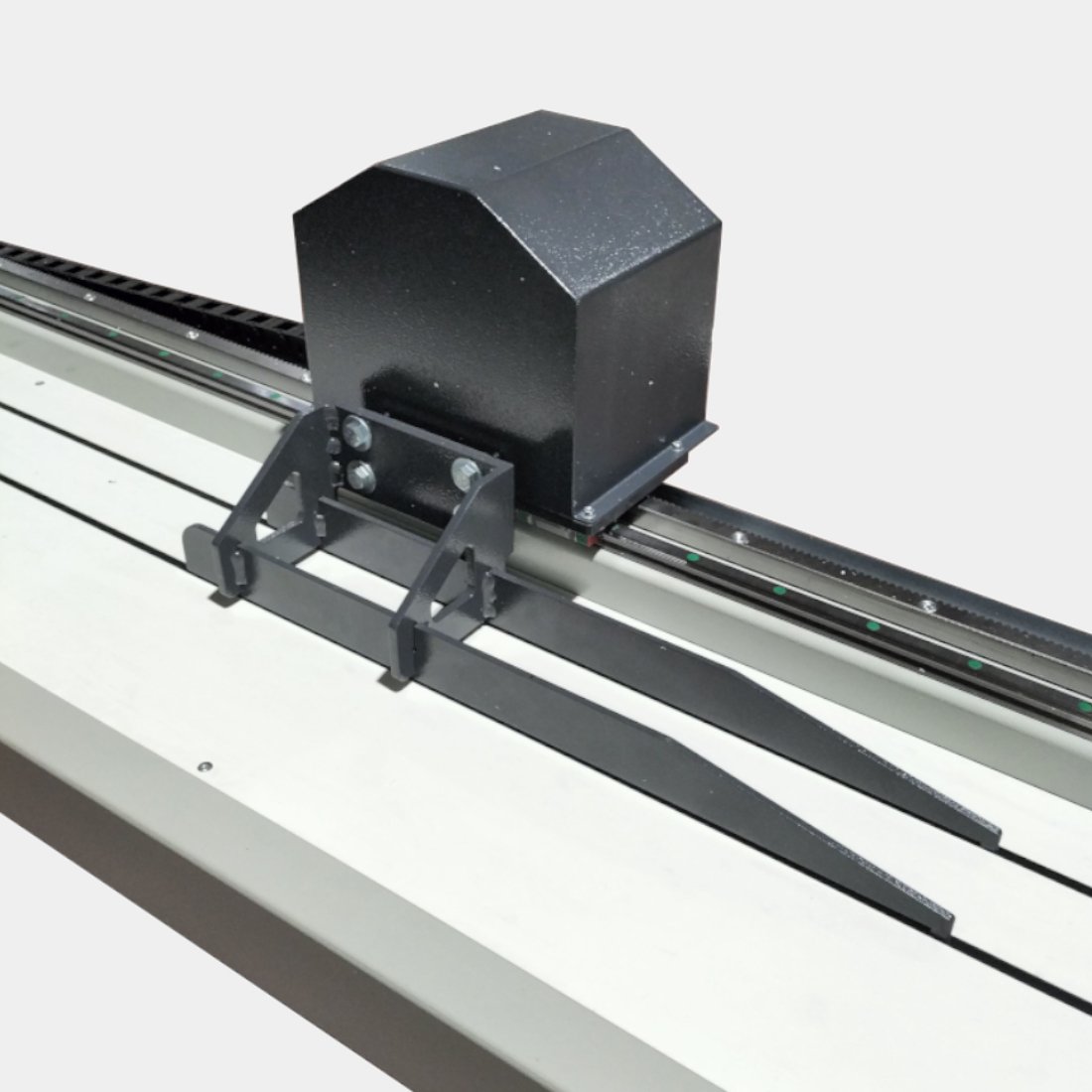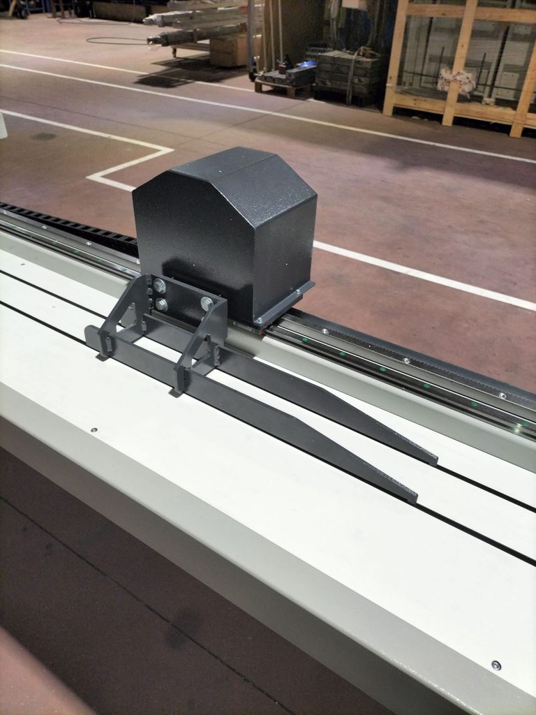 Equipado con pantalla táctil, servomotor, guías rectificadas y cremallera helicoidal lo cual crea el contacto simultaneo de tres dientes en lugar de uno, esto permite el posicionamiento automático del tope con gran precisión.