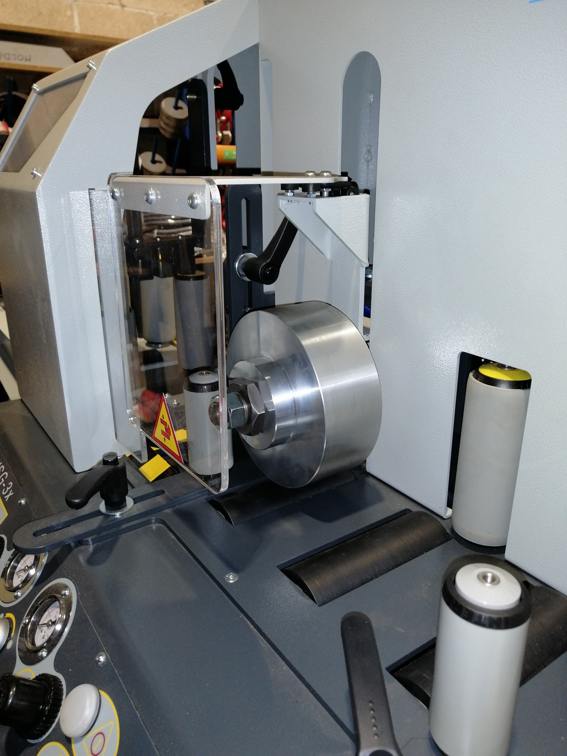 - Rodillos verticales con cubierta elástica para protección de roces.