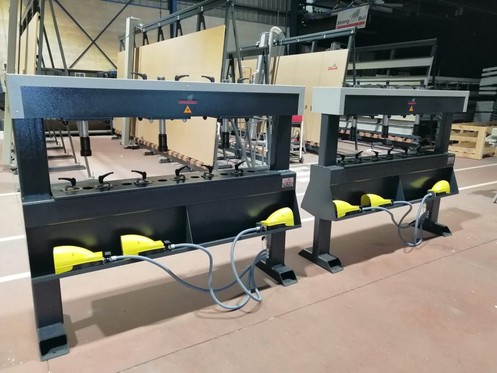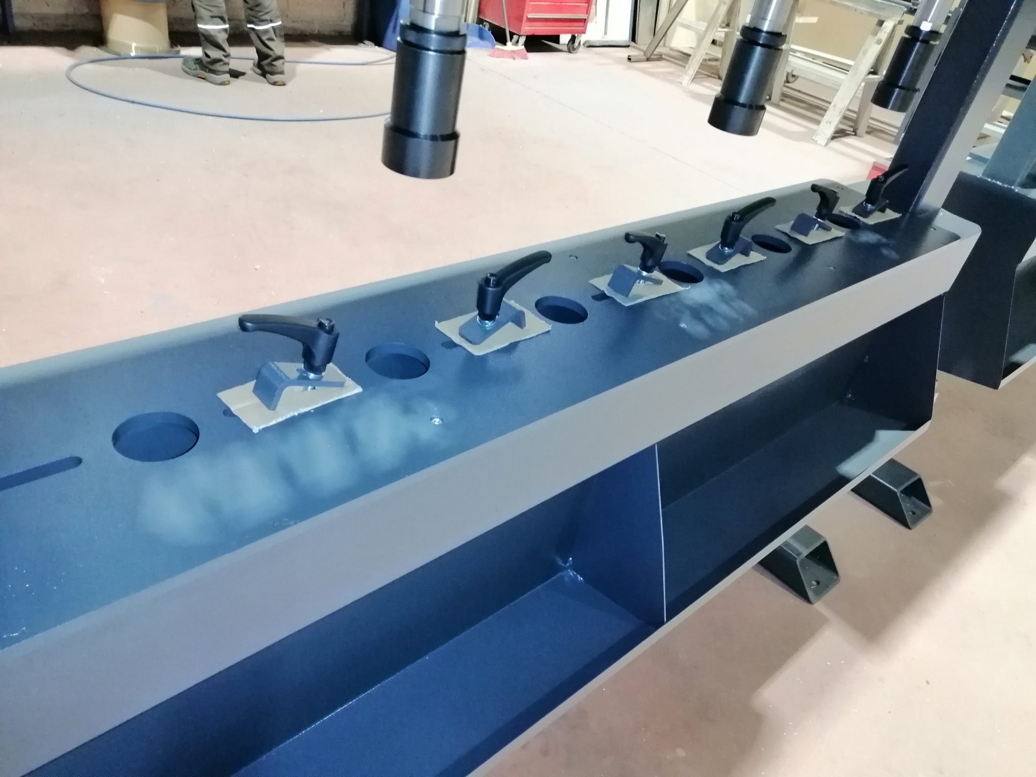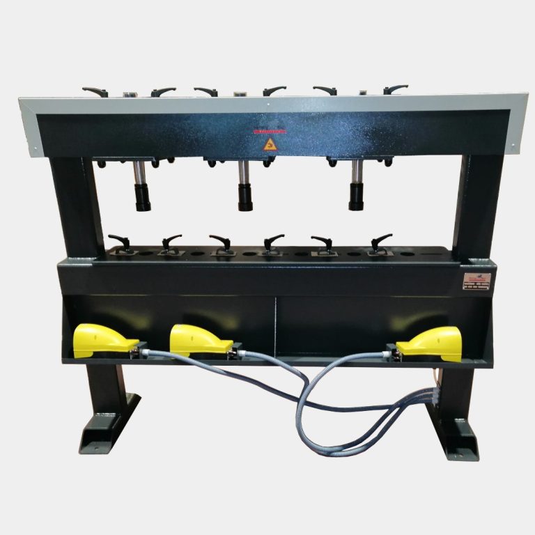 Máquina diseñada para el accionamiento de troqueles para carpinterías metálicas. El cilindro prensor es desplazable a lo largo de la amplia mesa de trabajo, de esta forma, se pueden tener simultáneamente varios troqueles en orden de trabajo.
