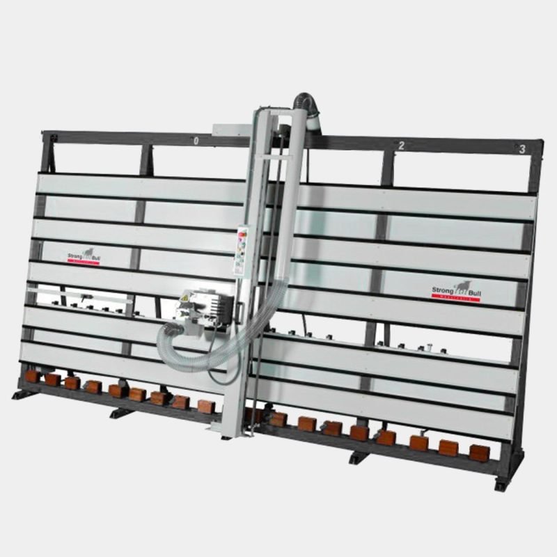 Las sierras verticales Strong Bull están diseñadas para seccionar y escuadrar paneles de grandes dimensiones ocupando el mínimo espacio en el taller y sin renunciar a una gran calidad de acabado y un máximo aprovechamiento de los paneles.
